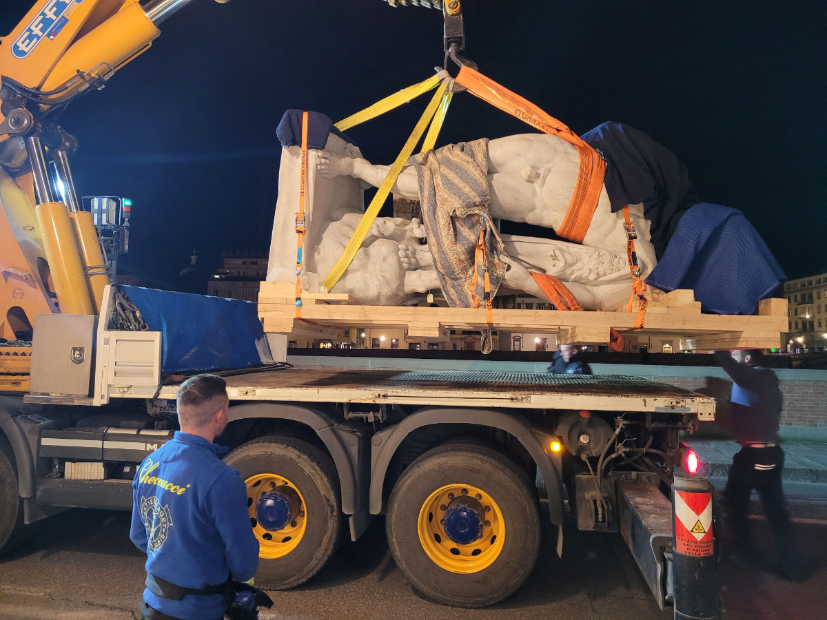 In our showroom, the Bazzanti Gallery in Florence, we moved the marble statue of the Farnese Hercules weighing approximately 6 tons. The enormous sculpture will be packaged and then shipped to Indonesia.